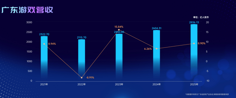 12月23日,《2025广东游戏产业发展报告》在广东游戏产业年会上发布。报告显示,2025年广东游戏产业营收达2836.13亿元,同比增长8.9%,占全国总营收的80.85%。其中,手游收入首次突破2000亿(2116亿元),小游戏营收370.46亿元、同比增长40.9%,客户端游戏增速(15.78%)首超移动端。
