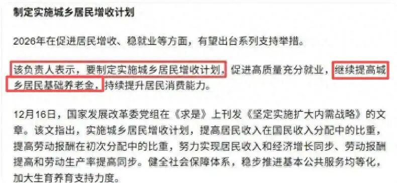 因此,每年都会提高城乡居民基础养老金,2026年也不例外,相关部门已经做出表态了,如中央财办有关负责在谈到制定城乡居民增收计划时明确表态,“继续提高城乡居民基础养老金”。