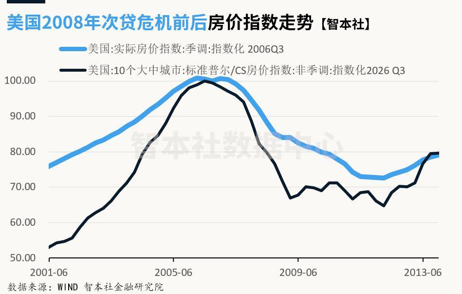 2007美国的次贷违约引发危机,房价经历“自由市场出清+政策托底”两阶段。