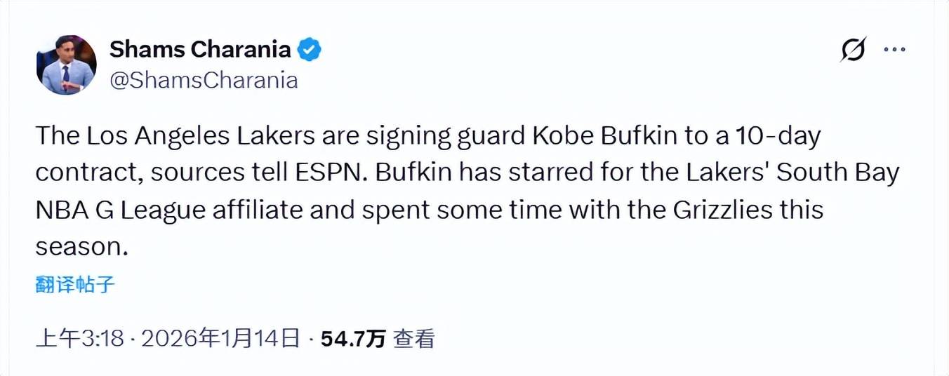 金年会,金年会官网,金年会平台,金年会登录,金年会网址,金年会网站,金年会app,金年会官方网站,金年会体育,金年会数字站,金年会娱乐,金年会体育赛事,金年会体育,金年会最新入口北京时间1月14日,据名记Shams报道,湖人已同意与后卫科比-巴夫金签下一份10天短合同。巴夫金是2023年NBA选秀的首轮15号秀,职业生涯前两个赛季效力于老鹰,休赛期被交易至篮网,随后在2025-26赛季常规赛开打前被篮网方面裁掉。