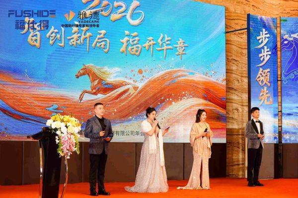伴随着《福仕得之歌》暖场视频的温情回顾,年会正式拉开帷幕。主持人开场后,全体同仁共同观看了2025年的回顾视频,熟悉的镜头里满是并肩奋斗的共鸣;生动画面复盘了2025年公司在康养辅具领域取得的成绩和不足,也为整场盛典奠定了温暖而昂扬的基调。